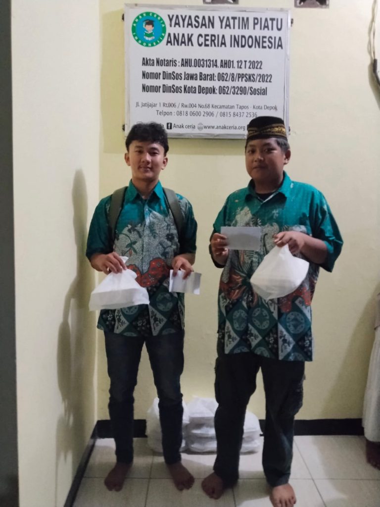 Alhamdulillāh, pada hari Senin, 09 Maret 2026, anak-anak binaan Yayasan Anak Ceria Indonesia kembali merasakan hangatnya kasih sayang dari para dermawan. Melalui kebaikan hati Bapak/Ibu serta seluruh donatur, telah tersalurkan donasi berupa paket sembako, nasi box untuk berbuka, serta uang santunan dalam amplop yang diberikan dengan penuh keikhlasan.