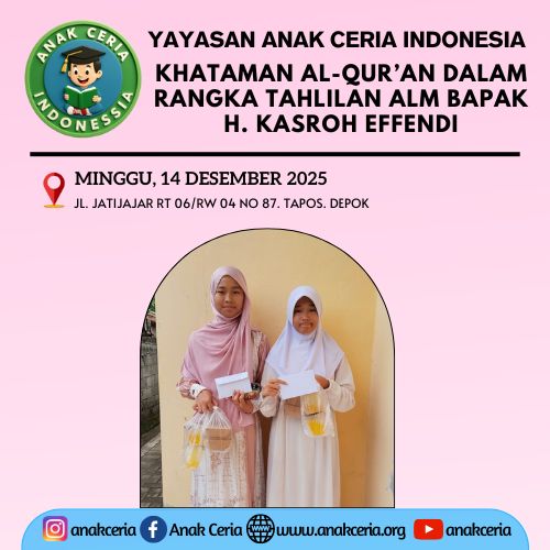 Assalamu’alaikum Warohmatullahi Wabarokatuh Hallo sahabat yatim seluruh nusantara……. Puja puji syukur kita haturkan kepada ALLAH SWT yang telah memberikan kita berbagai macam nikmat, salah satunya nikmat iman, nikmat islam, dan nikmat sehat wal a’fiat, dan semoga kita selalu dalam lindungan ALLAH SWT. Alhamdulillah Pada hari Senin, 22 Desember 2025 anak-anak binaan Yayasan Anak Ceria Indonesia […]