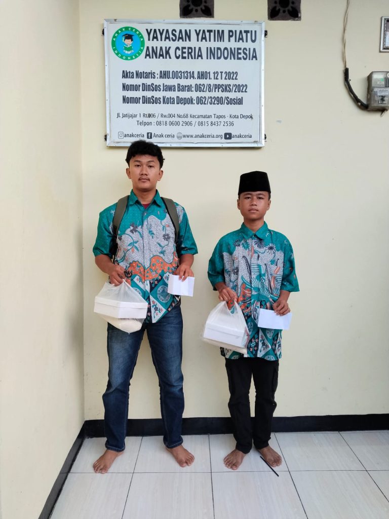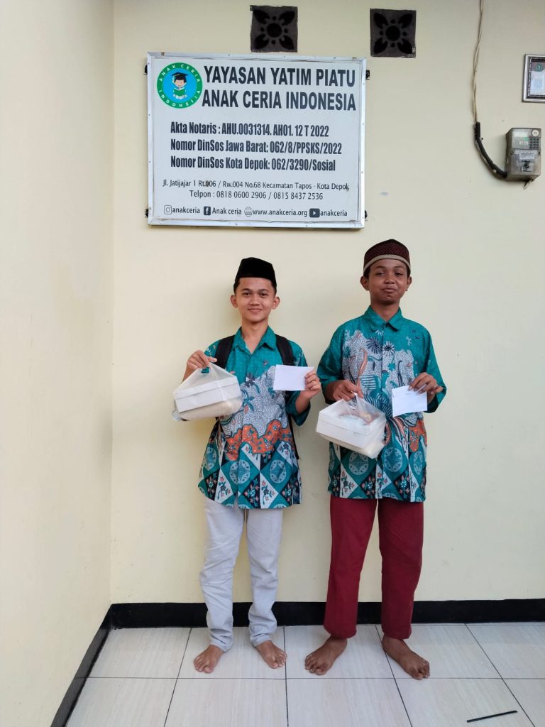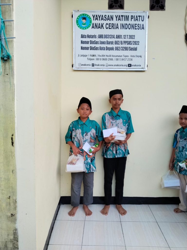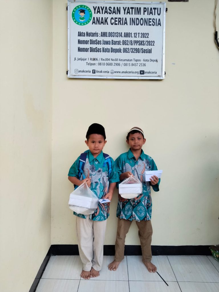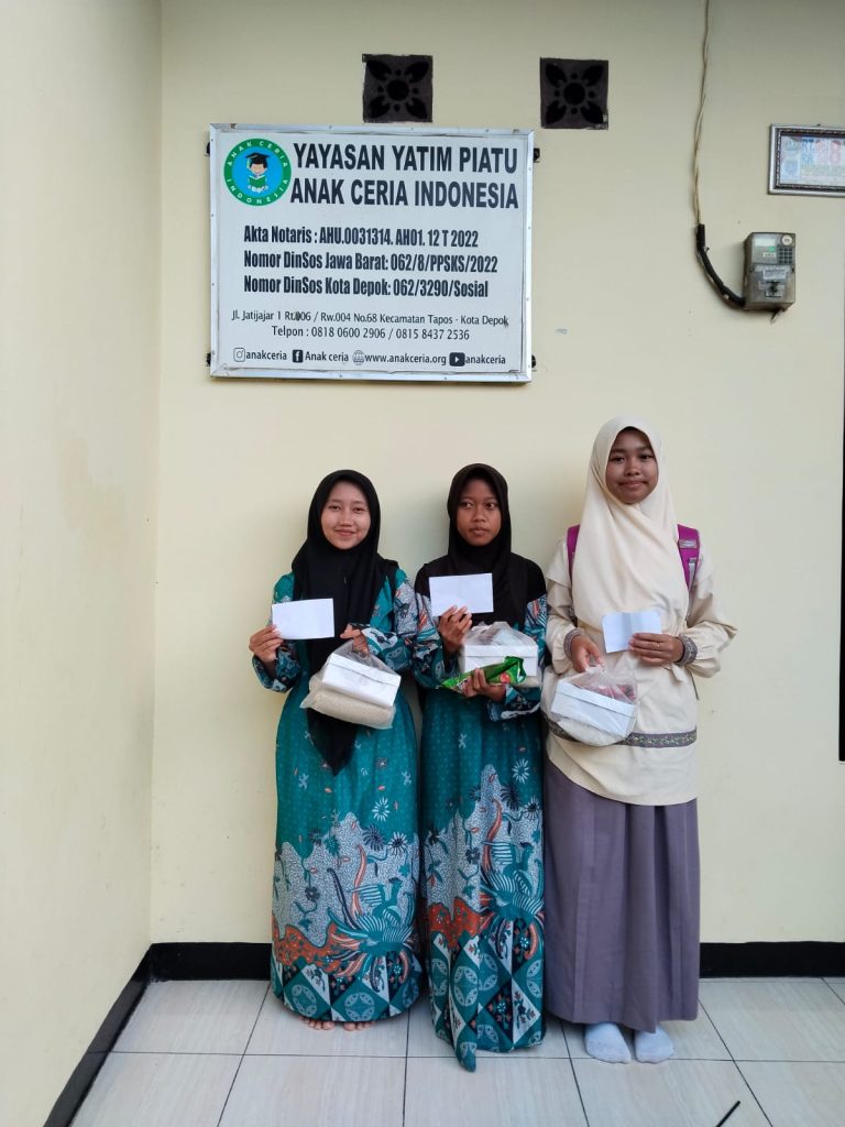 Alhamdulillah Pada hari Jum’at, 24 April 2026 anak-anak binaan Yayasan Anak Ceria Indonesia mendapatkan Sembako, Snack, Uang amplop & Nasi kotak dari Seluruh donatur. Kami mengucapkan terima kasih kepada seluruh donatur atas donasi yang diberikan kepada anak-anak yatim kami sebagai bentuk partisipasi dalam kegiatan Jum’at Berbagi Berkah ini. Semoga donasi yang diberikan dapat membawa kelimpahan rezeki, umur panjang yang barokah, kelancaran dalam segala urusan dan pekerjaan serta mendapat kesuksesan dunia akhirat. Aamiin…..