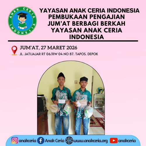 Pengajian Jum’at Berbagi Berkah Yayasan Anak Ceria Indonesia pada hari ini, Jum’at, 27 Maret 2026, dengan ini resmi dibuka.