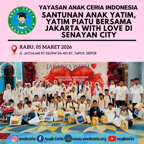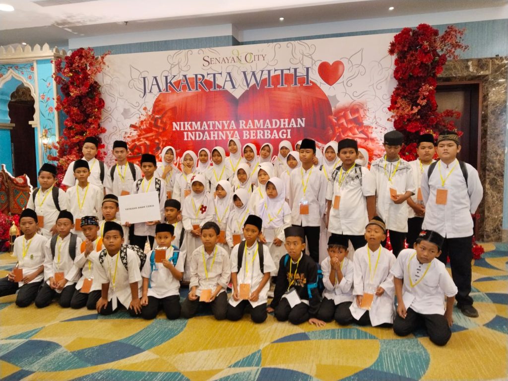 Alhamdulillāh, dengan penuh rasa syukur kepada Allah SWT, pada Rabu, 05 Maret 2026 anak-anak binaan Yayasan Anak Ceria Indonesia berkesempatan menghadiri kegiatan Buka Puasa Bersama dan Santunan Anak Yatim yang diselenggarakan oleh keluarga besar @jakartawithlove di Senayan City.